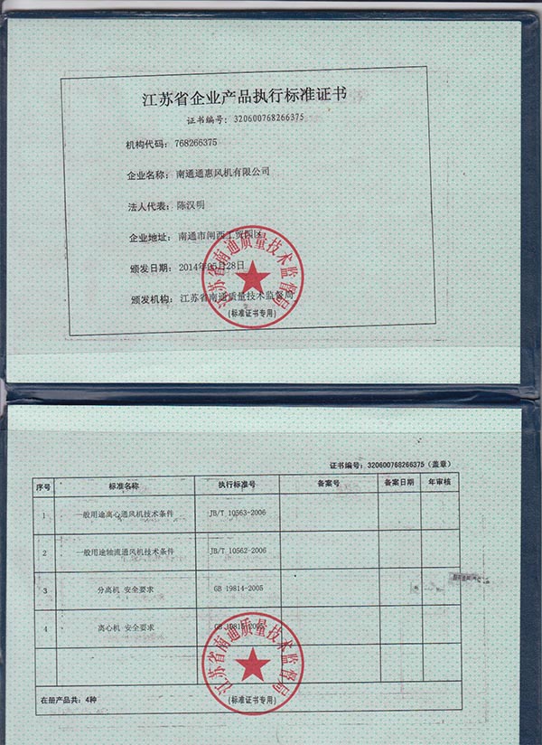 江蘇省企業(yè)產(chǎn)品執(zhí)行標準證書